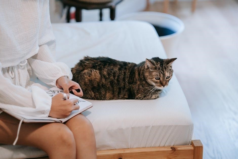 The guide humorously acknowledges the human need to provide, suggesting cats graciously accept offerings of food and affection; Maintaining a balance of independence and affection is crucial for a harmonious relationship, ensuring both cat and human remain content and fulfilled.
